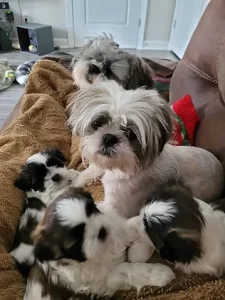 - Three Shih-tzu pups and two cats in home